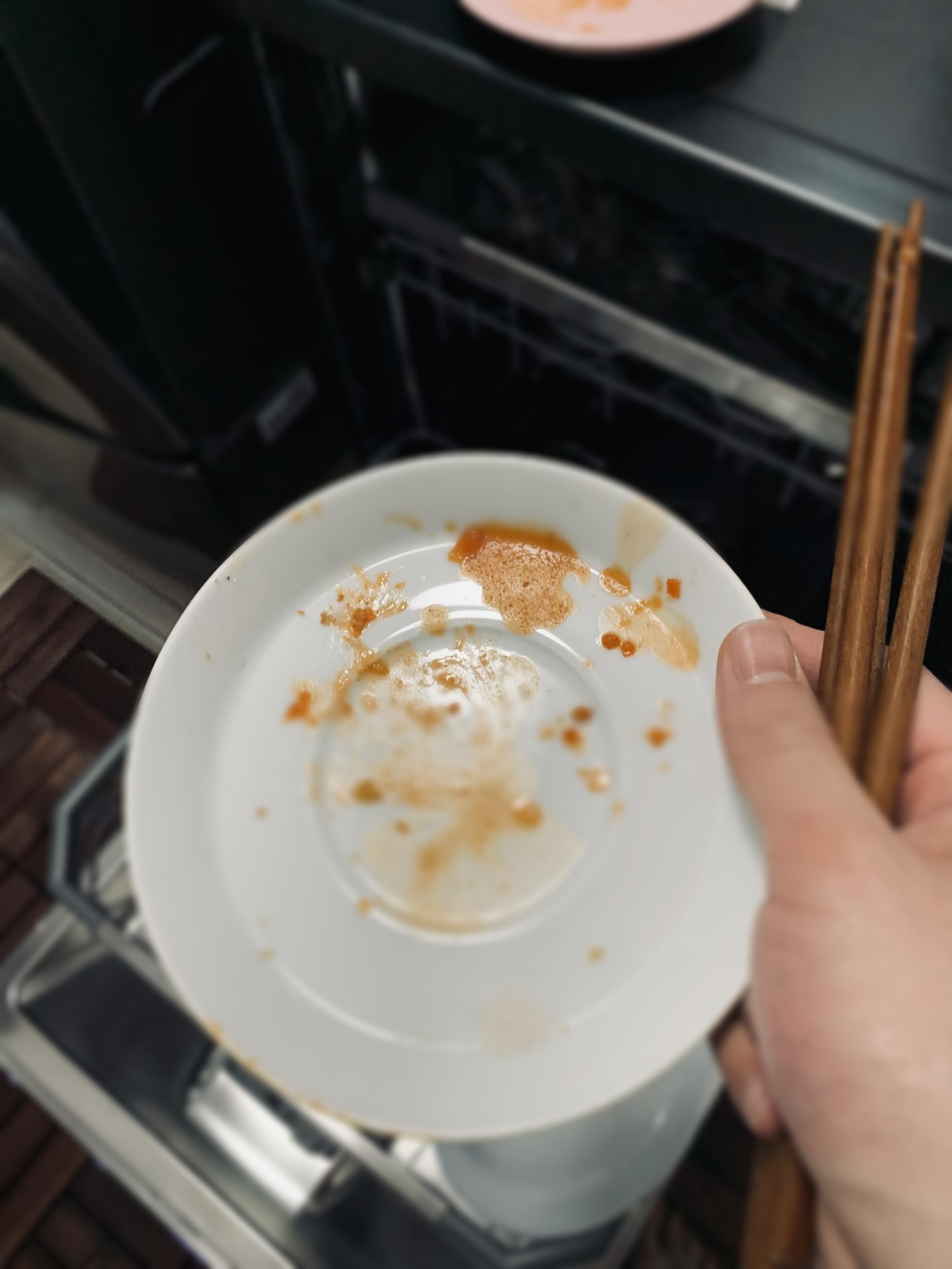앞접시도 양념 흔적없이 잘 닦였다. 스팀을 사용해서 그런지 식기도 뽀드득할 정도로 잘 건조되어 나왔다. 식기를 많이 넣지 않아 아직 그 성능을 이야기하기에는 어려운 점이 있지만, 일단 최소한의 기준은 만족한다고 해둘 수 있겠다.