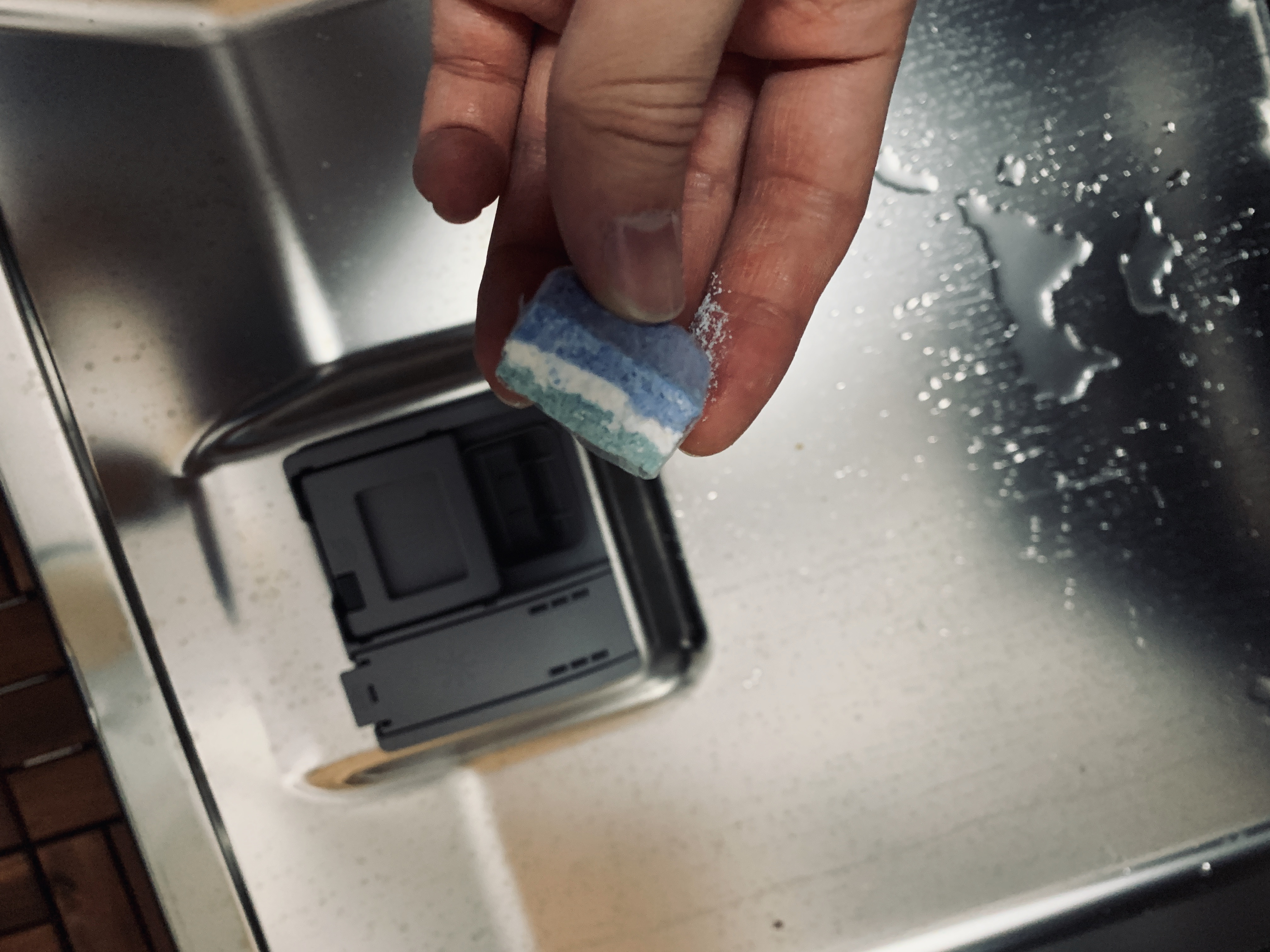 추가로 다른 식기들도 넣고 가루 세제를 문 뒷편에 있는 세제통에 넣은 후 아래로 딸깍 닫아준다.
