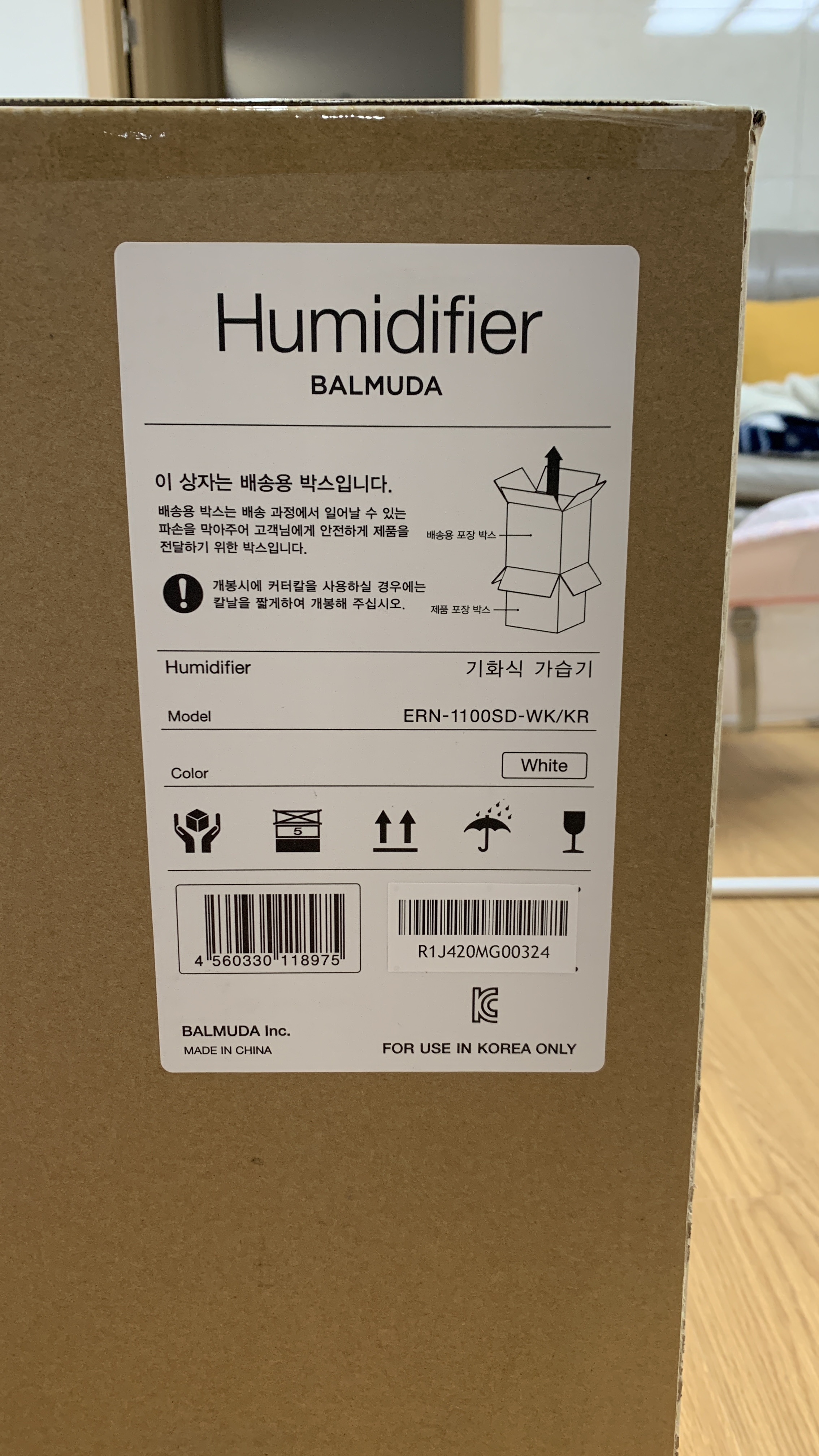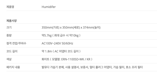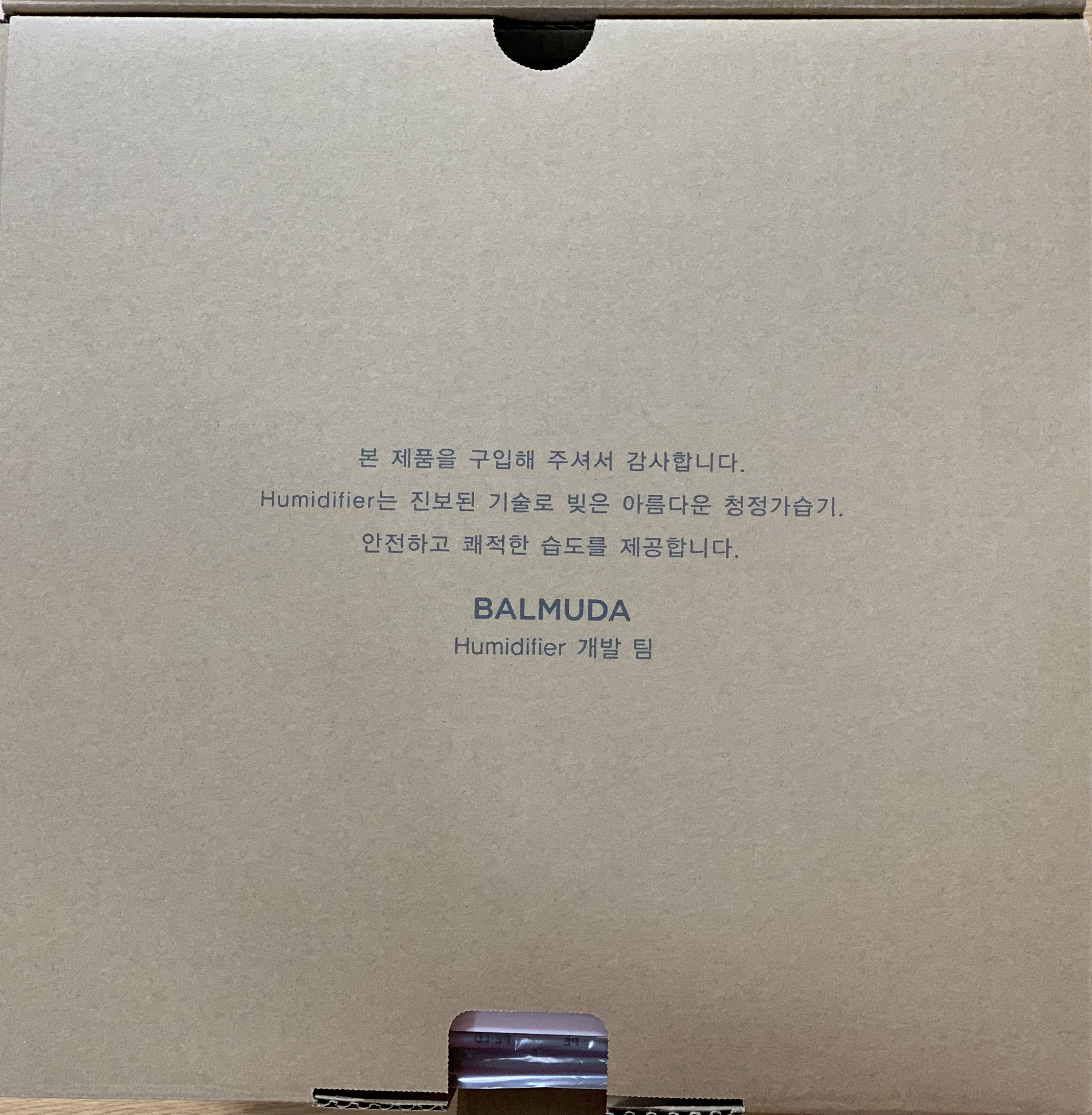 ▼ 본 박스 위에는 가습기에 대한 설명과 택배 시 유의사항이 표현되어 있습니다.