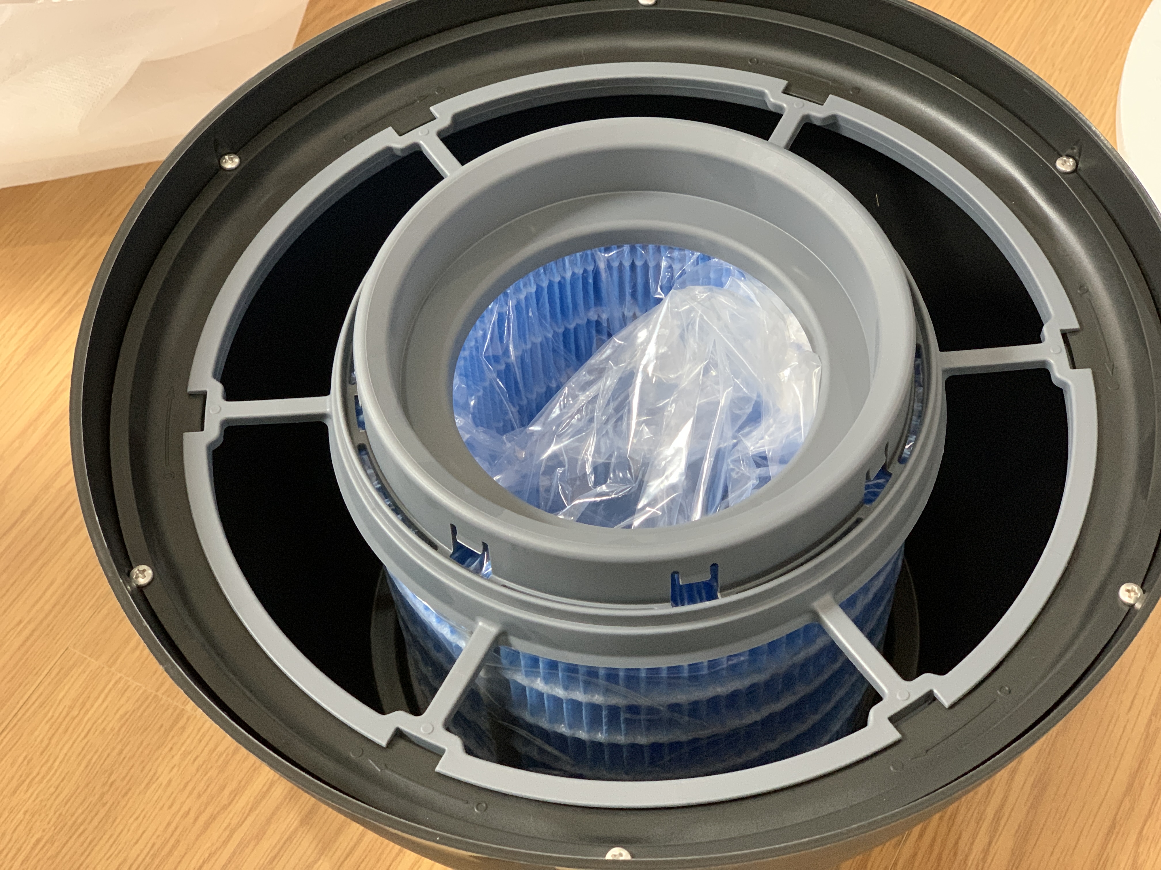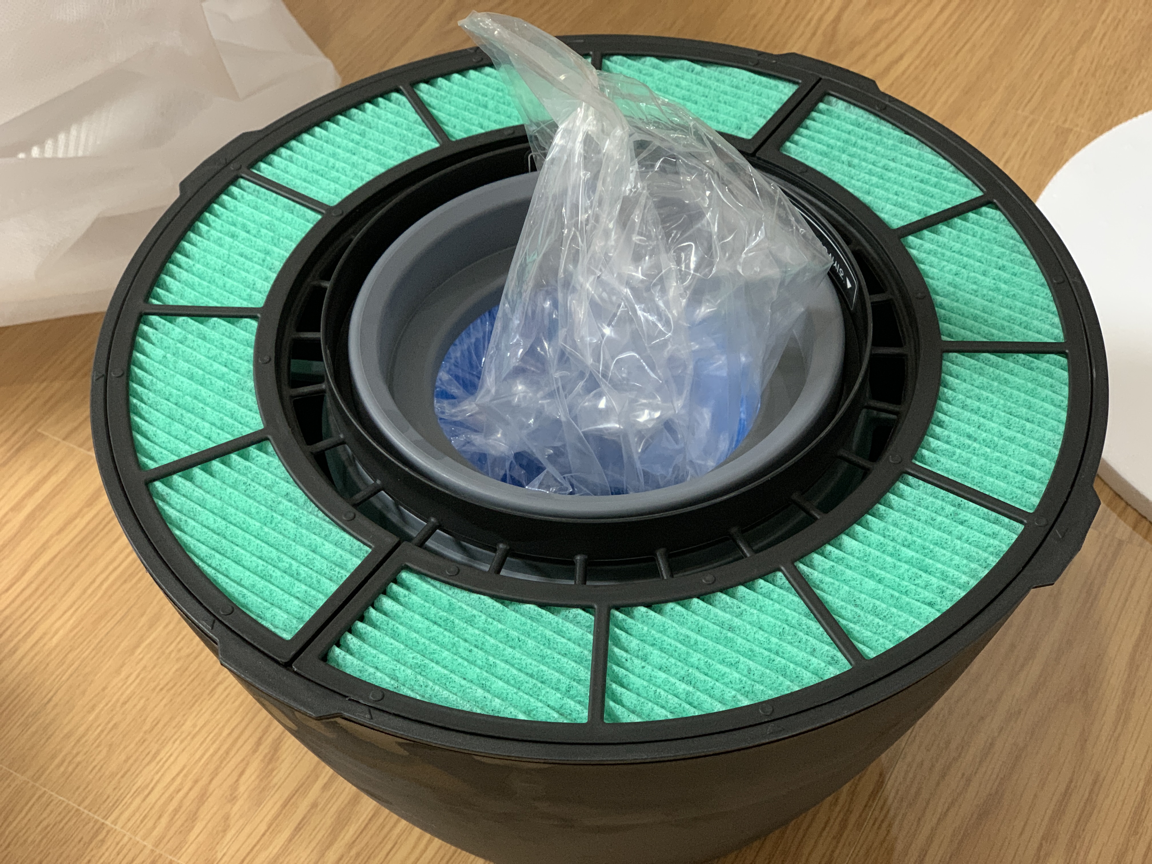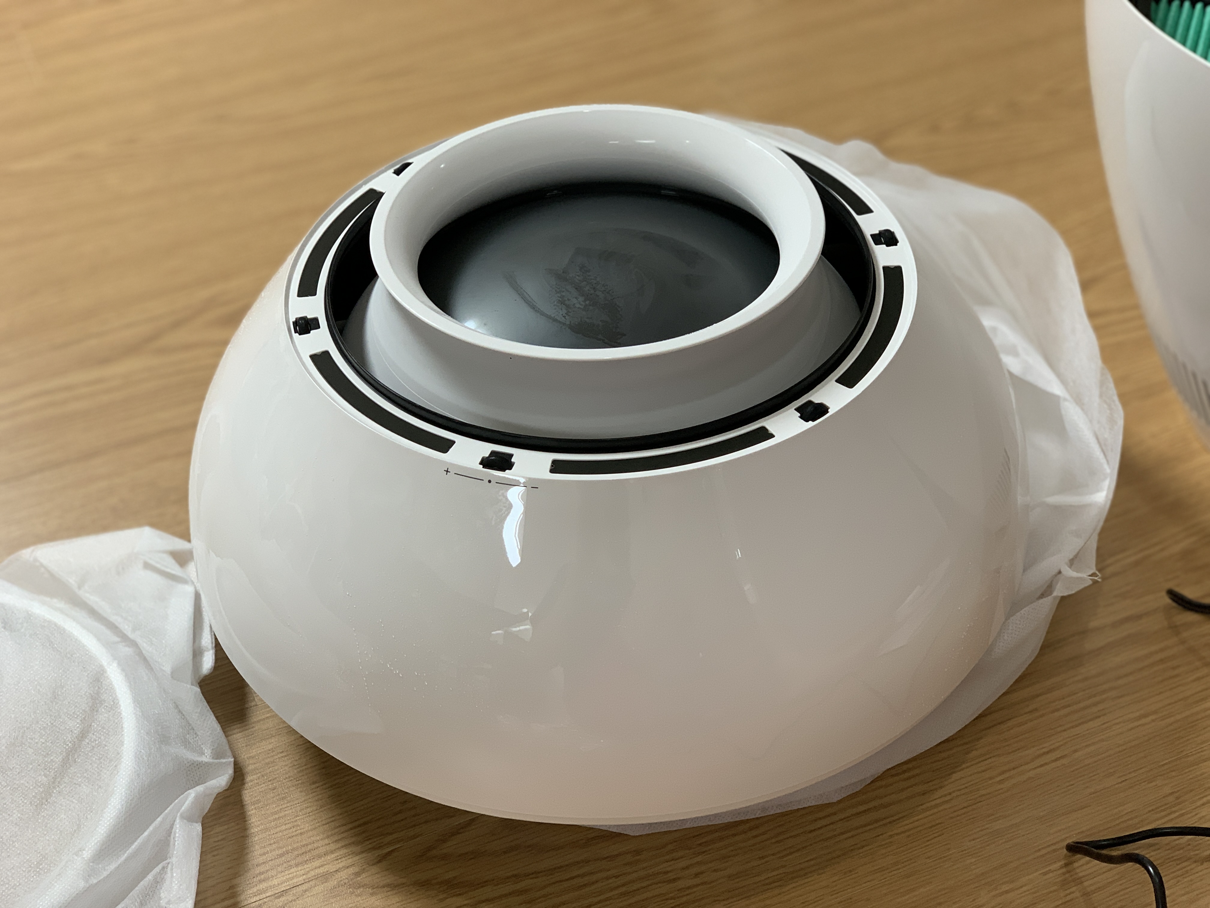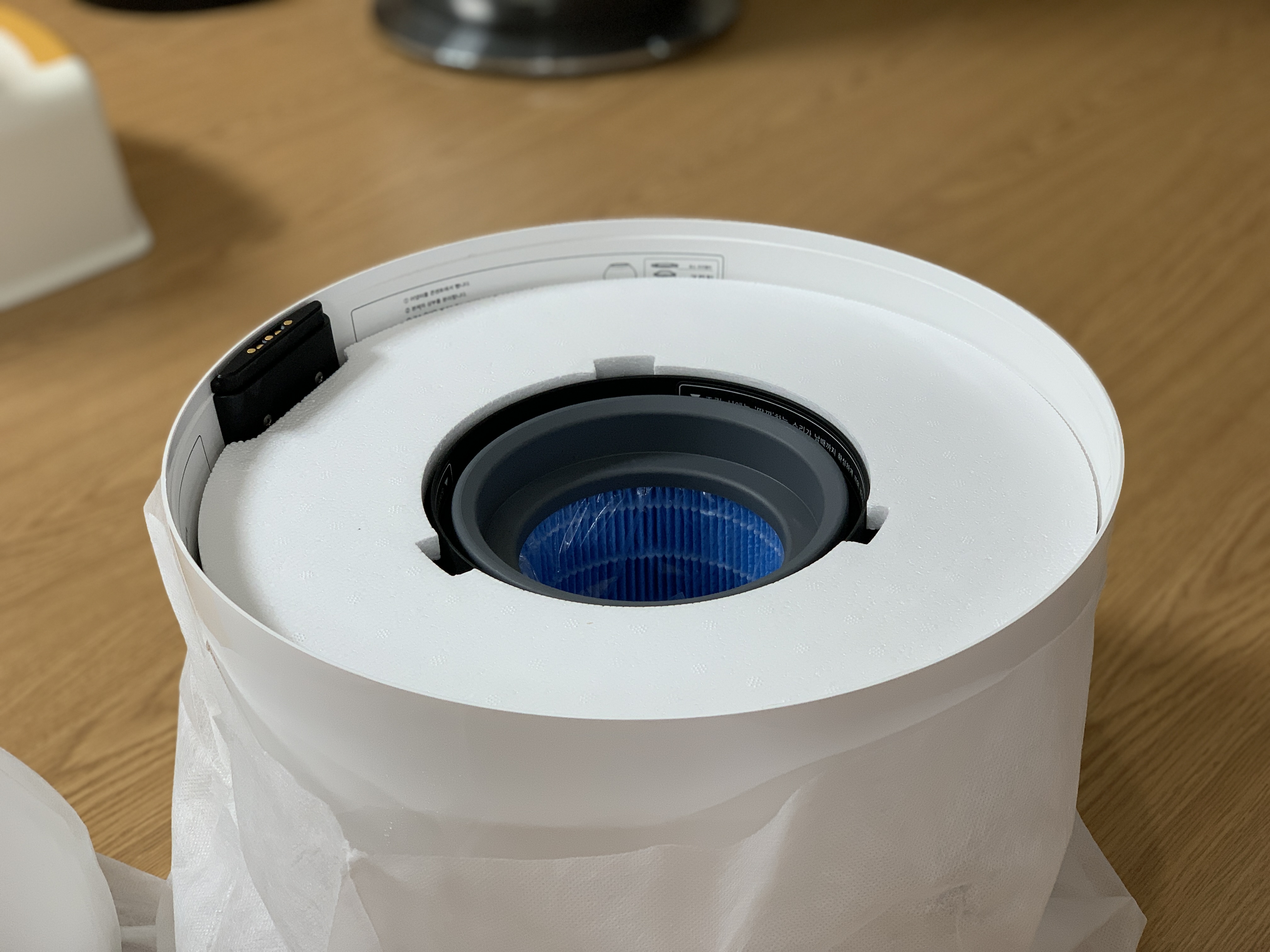 ▼ 모든 필터 및 하단 조립이 완료되었으면 상단을 올리면 마무리 됩니다. 여기서 확인이 필요한 부분이 생겼습니다. 처음 받았을 때 상단부에서 물기를 조금 확인하였습니다. 사진처럼 많진 않으나 표면에 물방울들이 맺혀 있었습니다. 납품 준비 시 남은 잔여 물이거나 겨울철 날씨가 너무 추워 발생한 것인지 확인이 필요한 부분이네요. 확인한 후 추가 내용을 남겨보도록 하겠습니다.