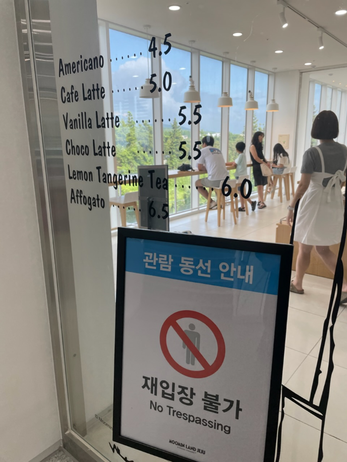 무민랜드에서 무민카페로 한번 넘어가면 재입장이 불가하다는 문구가 있네요.