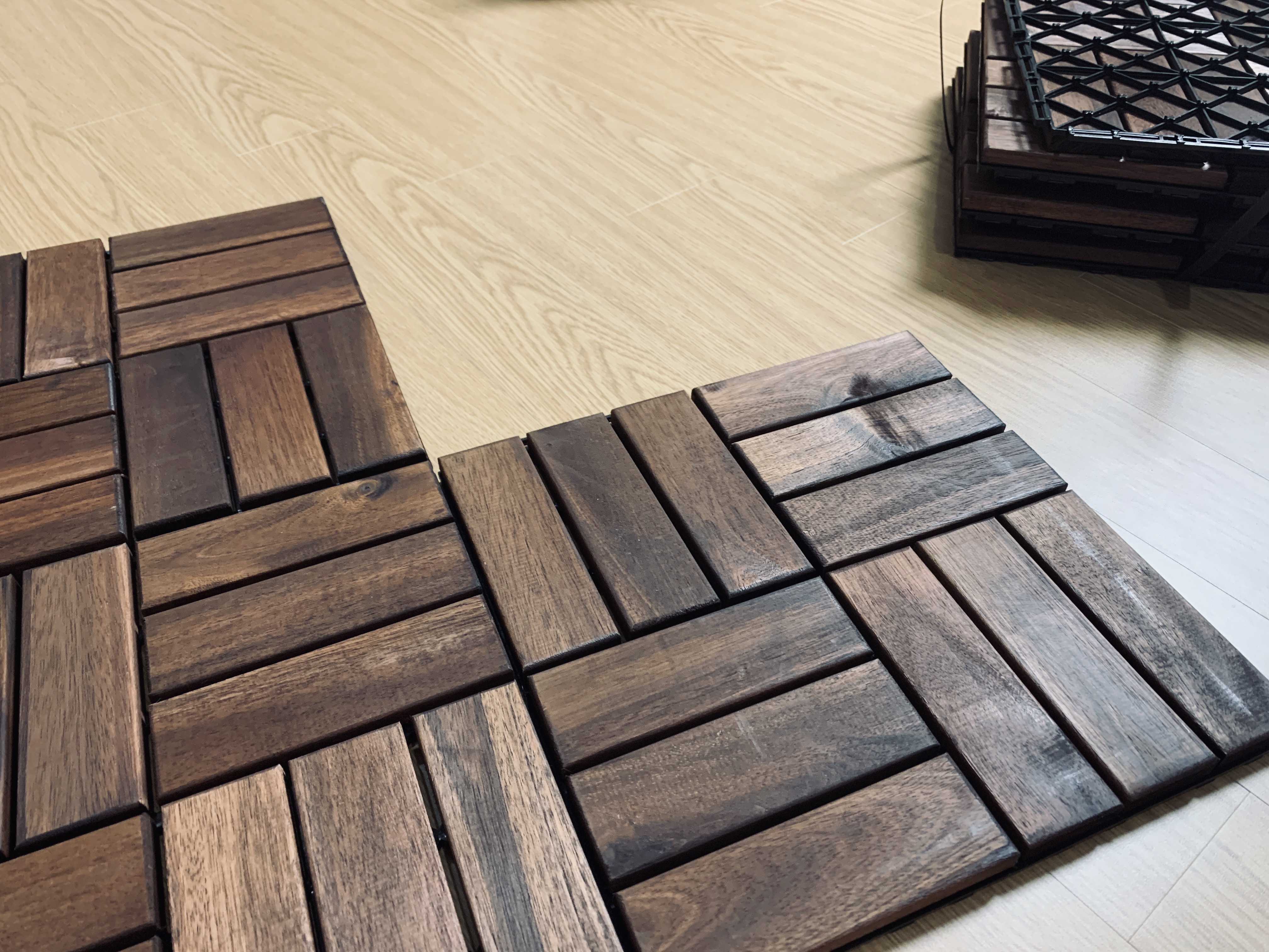 이렇게 완성된 바닥이다. 베란다에 가기가 한결 편해졌다. 분위기도 더 따뜻해 보인다. 베란다 구조 상 한쪽 부분이 튀어나와 저 부분을 분리해서 고정해 보려 한다. 일단 집에 놀러 오는 사람이 없으니 당분간은 놔두고, 공구 좀 빌려와서 한 번 시도해봐야겠다. 내돈주고산 이케아 발판 베란다 설치 후기 끄읏 :)
