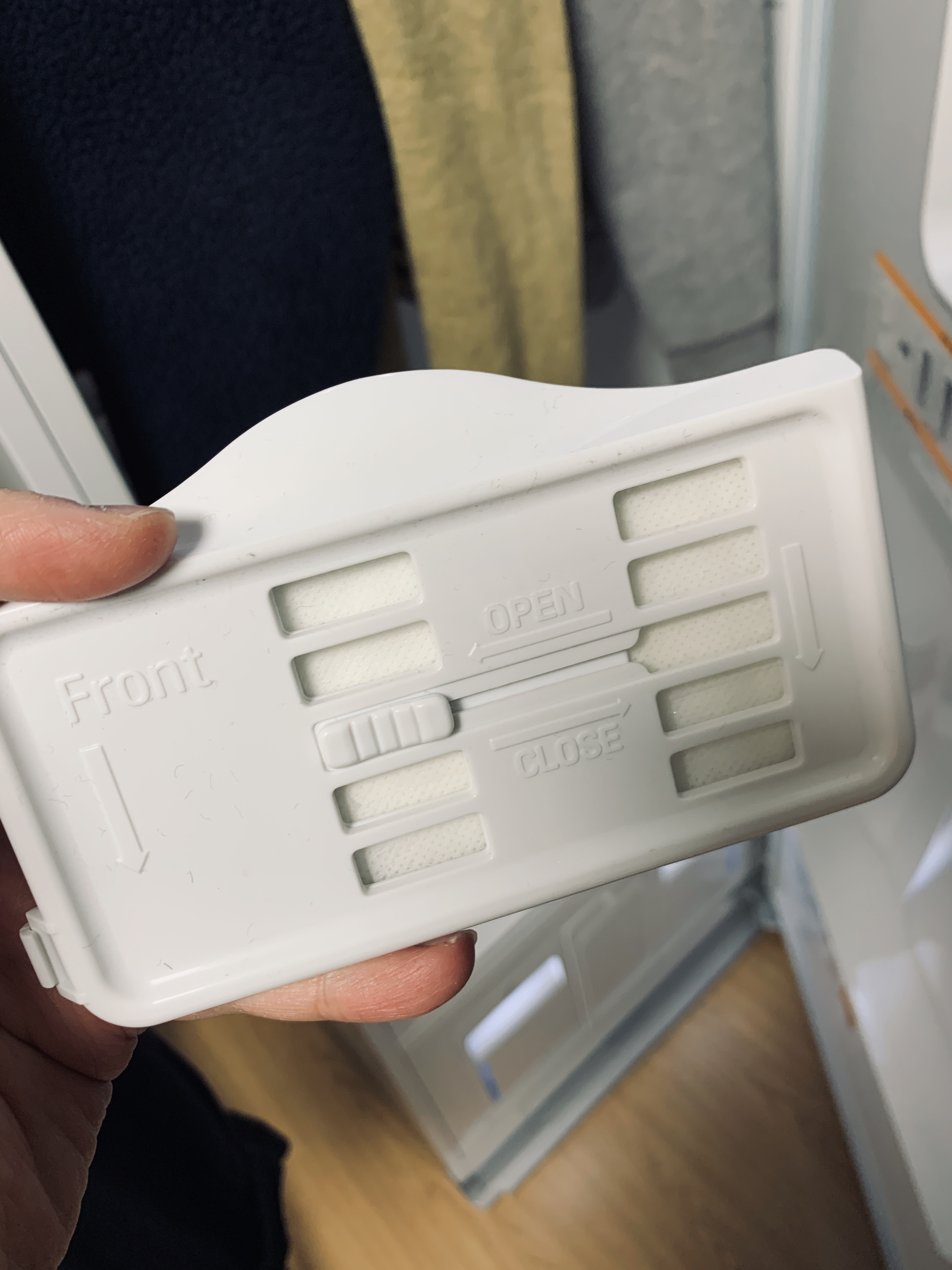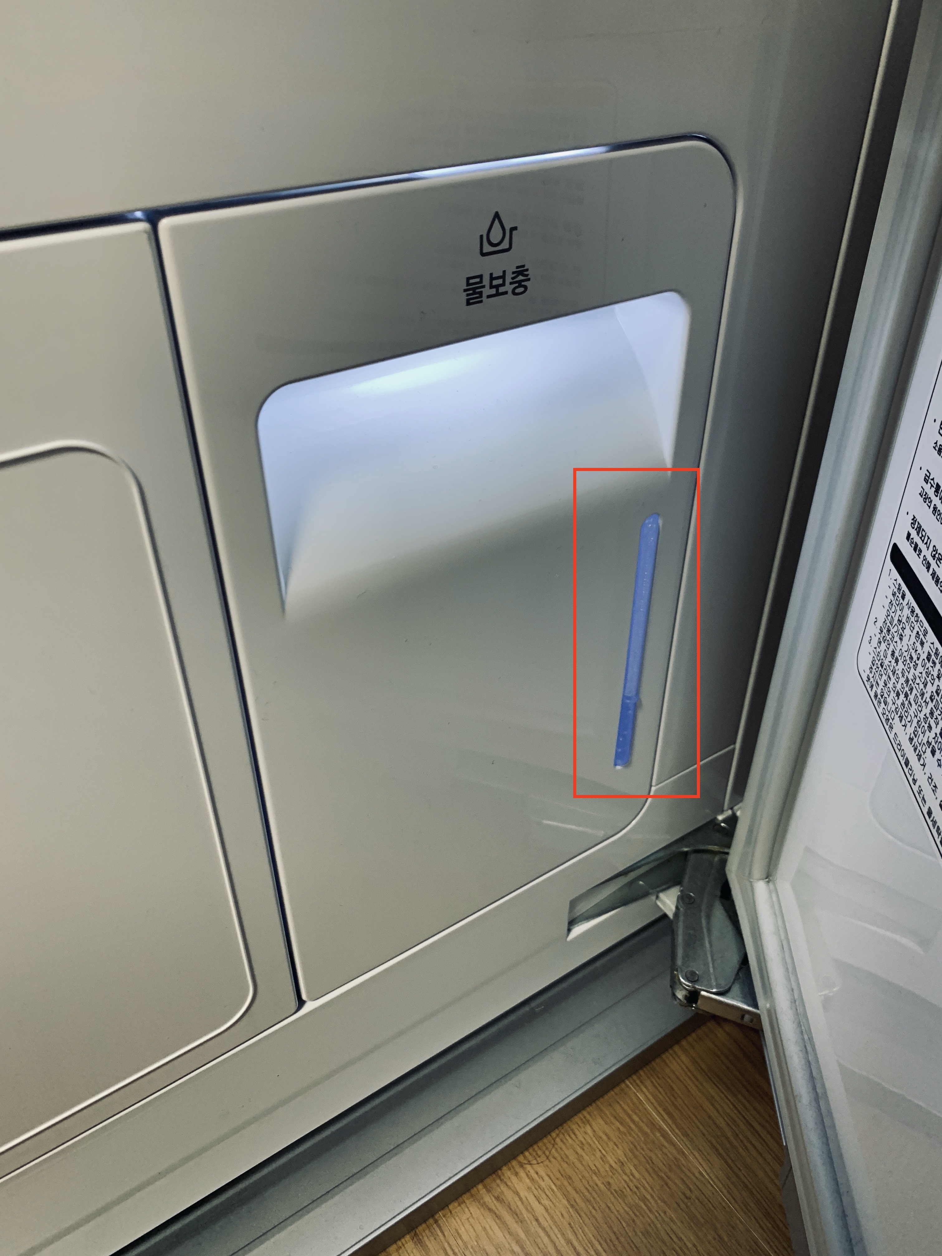 향기 나는 시트는 내부에 있는 전용 칸에 넣어주면 드라이가 진행되면서 향기가 옷에 스며든다. 시트를 빼지 않아도 칸을 열고 닫을 수 있다.