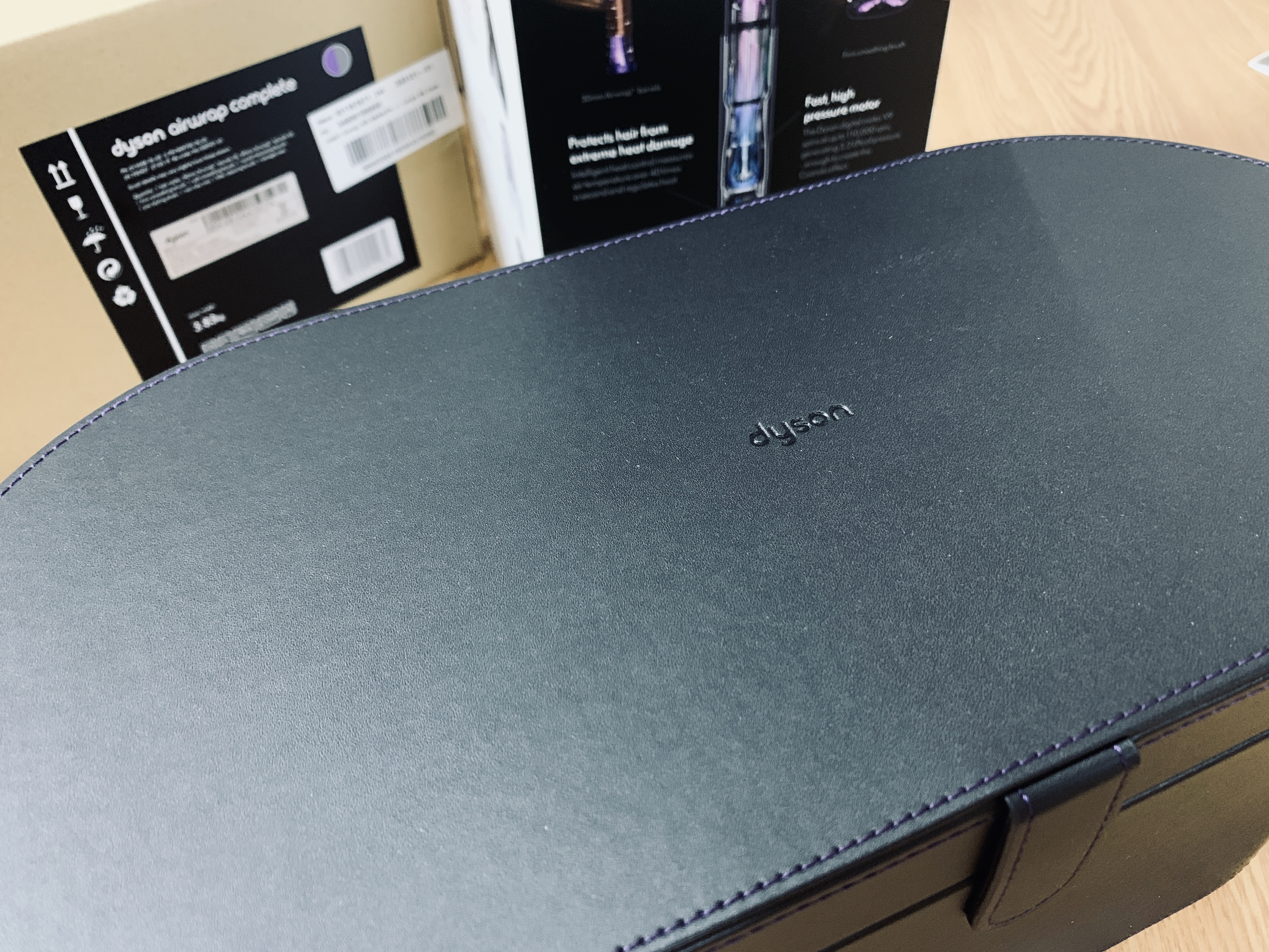 세 번째 박스 안에 드디어 에어랩 케이스가 보인다. 케이스는 가죽으로 되어있어 굉장히 고급스러워 보인다. 질감도 굉장히 부드럽다. 버튼은 자석으로 되어있다.