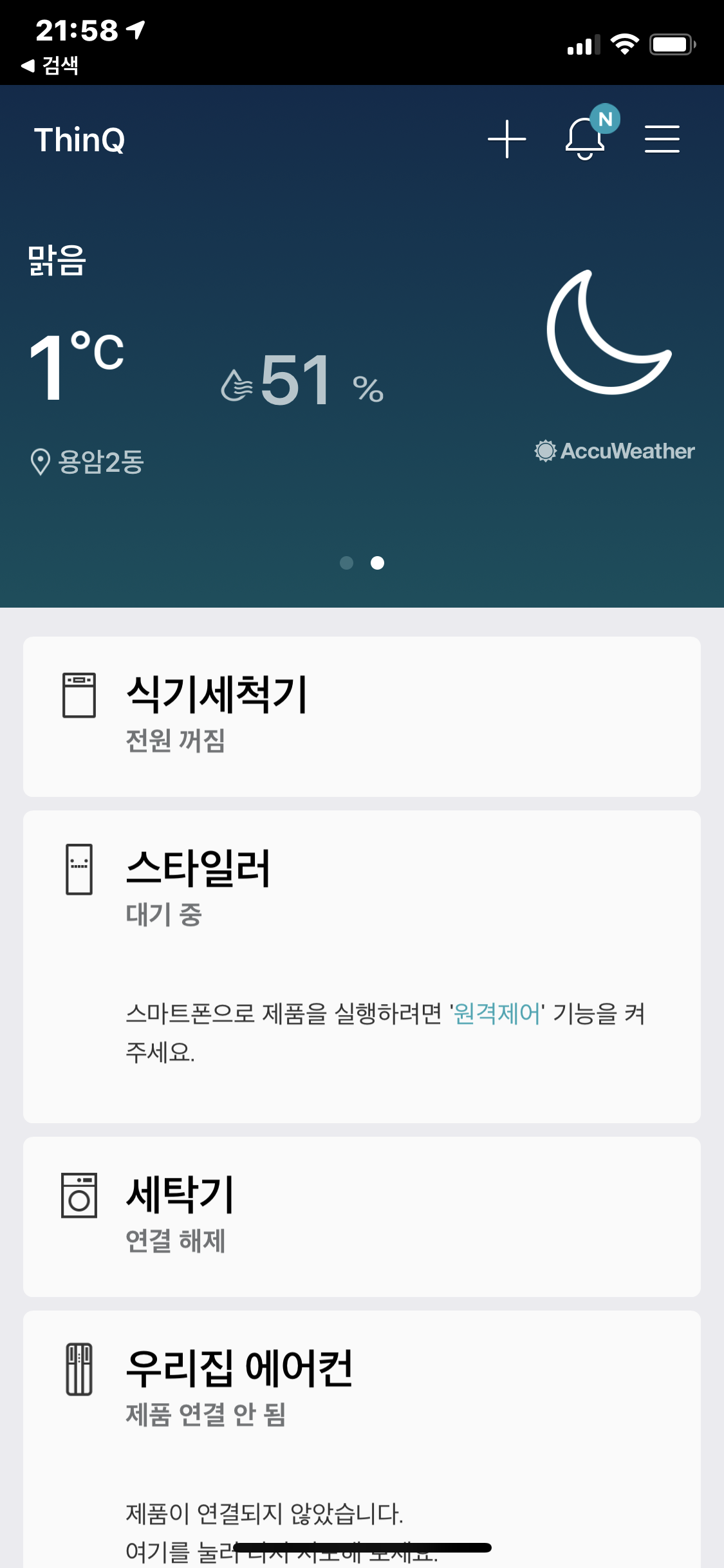 먼저 코스를 다운로드하기 위해서는 LG 스타일러를 ThinQ 앱에 연결을 시켜야 한다.