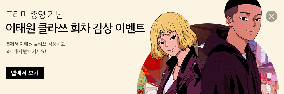 드라마 종영 기념으로 이태원 클라쓰 회차 감상 이벤트를 작성하면 500 캐시를 받을 수 있다고 하니 이벤트에 참여해보자. 앱에서만 참여 가능하니 앱 설치는 필수!