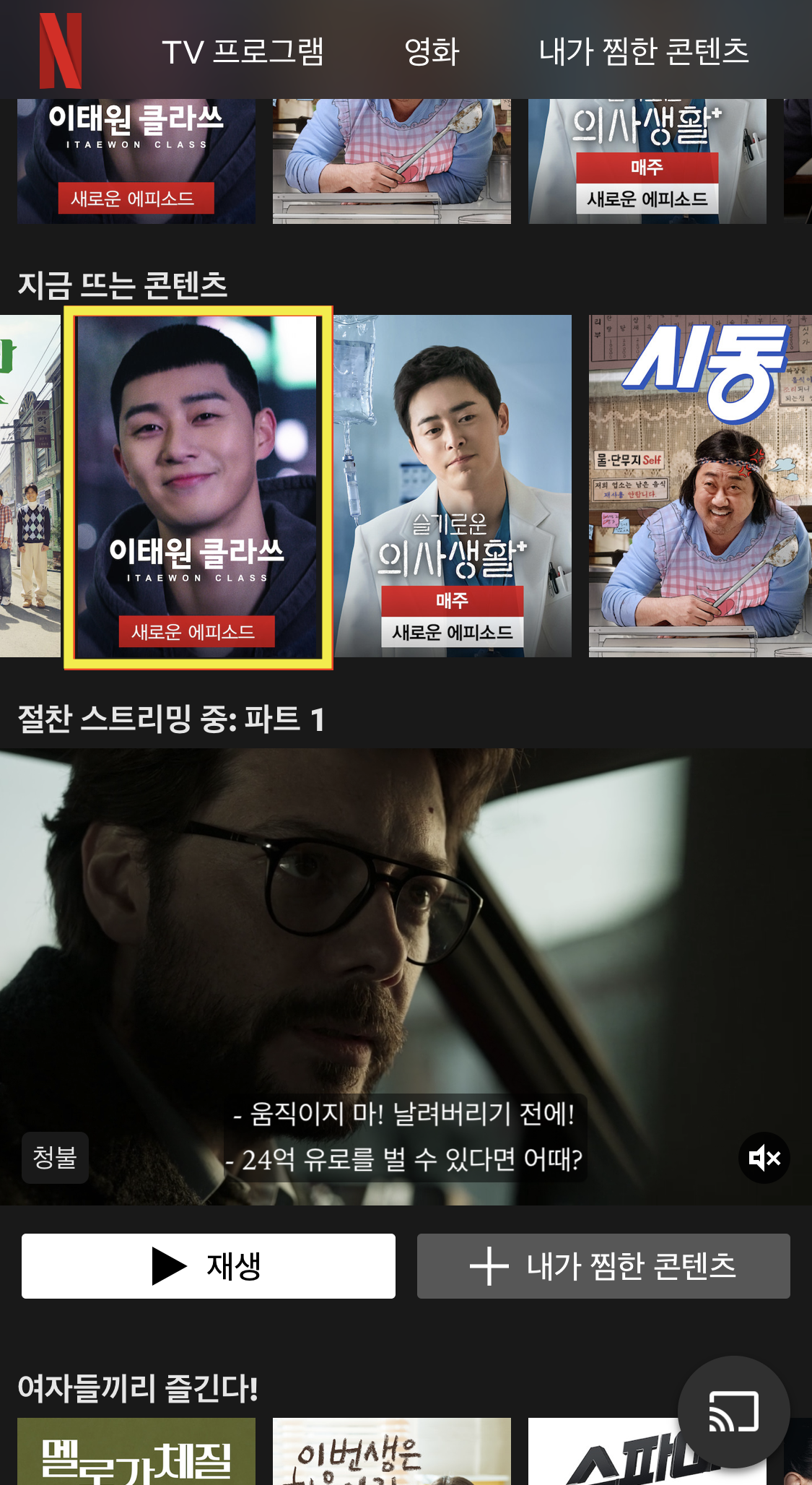 이태원 클라쓰는 지금 뜨는 콘텐츠이니 메인에서 조금만 내려보면 바로 확인이 가능하다.