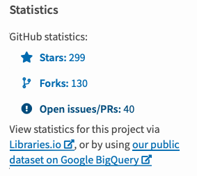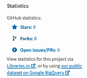 각 프로젝트를 클릭해보면 Statistics 항목이 보이며, 이 값을 통해 해당 프로젝트가 인기가 있고 많이 사용되고 있는 패키지인지 어느 정도 구별이 가능하다.