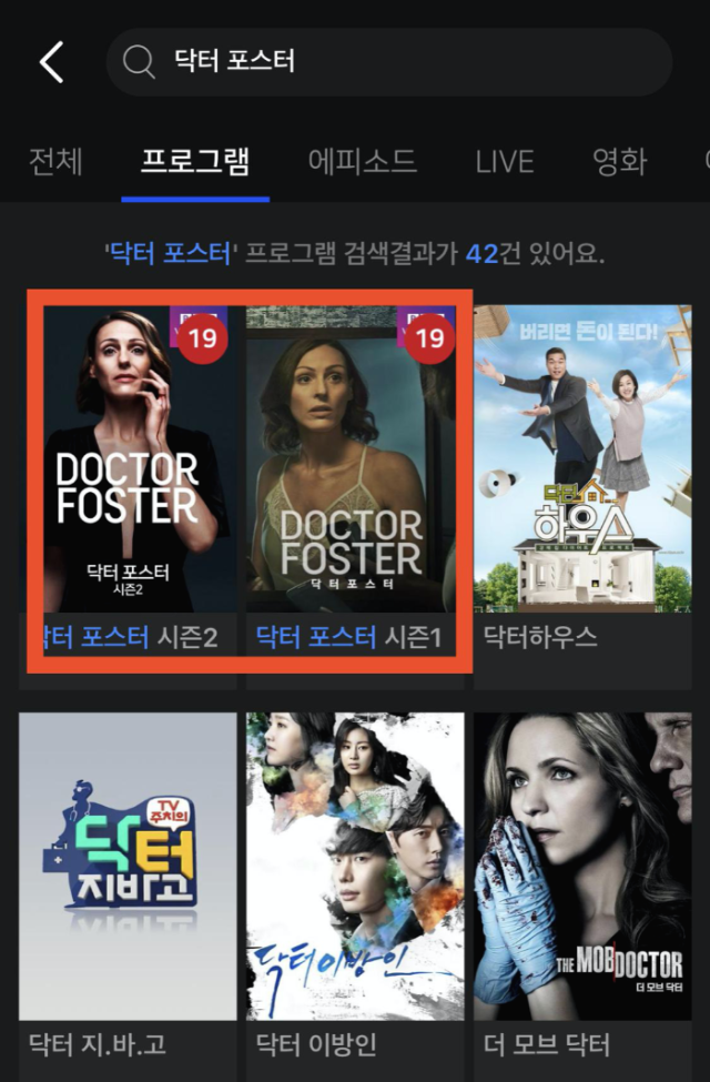 wavve에서 볼 수 있다. wavve란 pooq과 oksusu OTT가 합쳐지면서 새롭게 출시된 OTT 서비스이다. wavve에 접속하여 “닥터 포스터”를 검색하면 프로그램 탭에서 닥터 포스터 시즌 1, 2를 확인할 수 있다.
