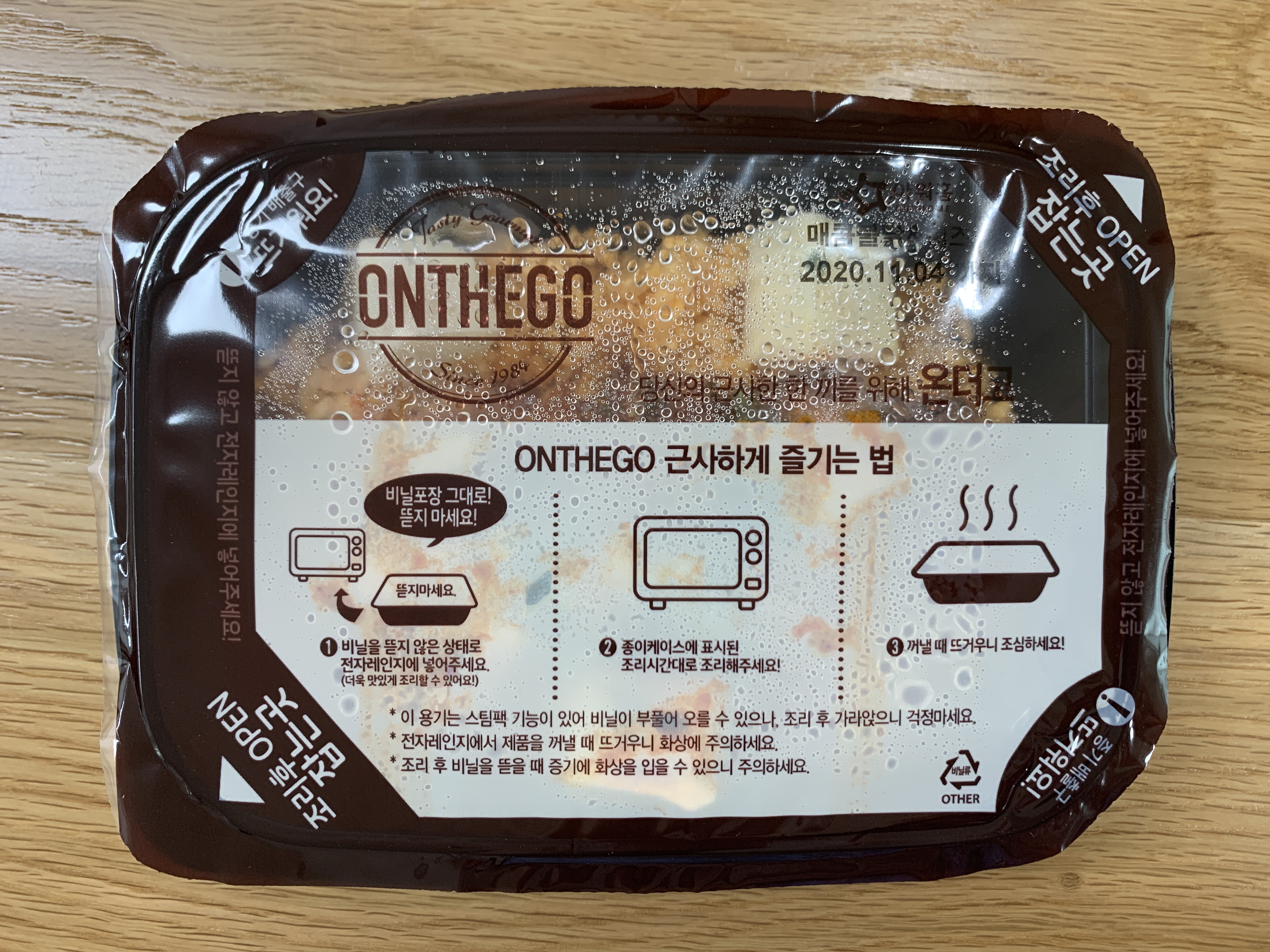 잘 보면 비닐포장을 뜯지 말아달라고 몇 번이나 말하고 있다. 그렇게 주의를 하라고 하니 꼭 그대로 넣어보았다. 옆에 스팀 배출구가 따로 있어 터지거나 하지는 않나보다.