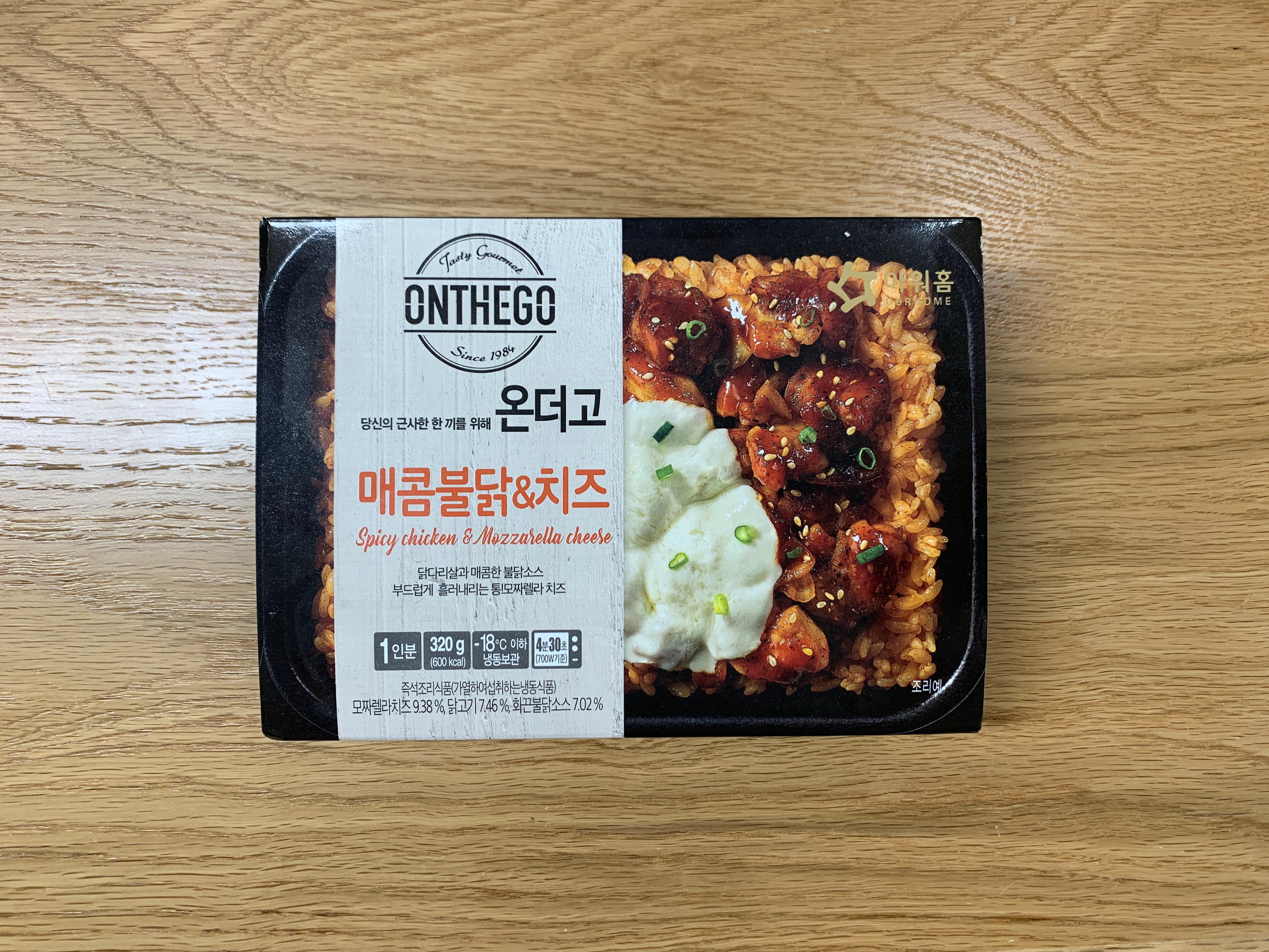 온더고 매콤불닭&치즈는 간단히 1인분으로 먹을 수 있는 도시락이다. 700w기준 전자레인지로 4분 30분 돌리면 먹을 수 있는 간편 도시락이다.