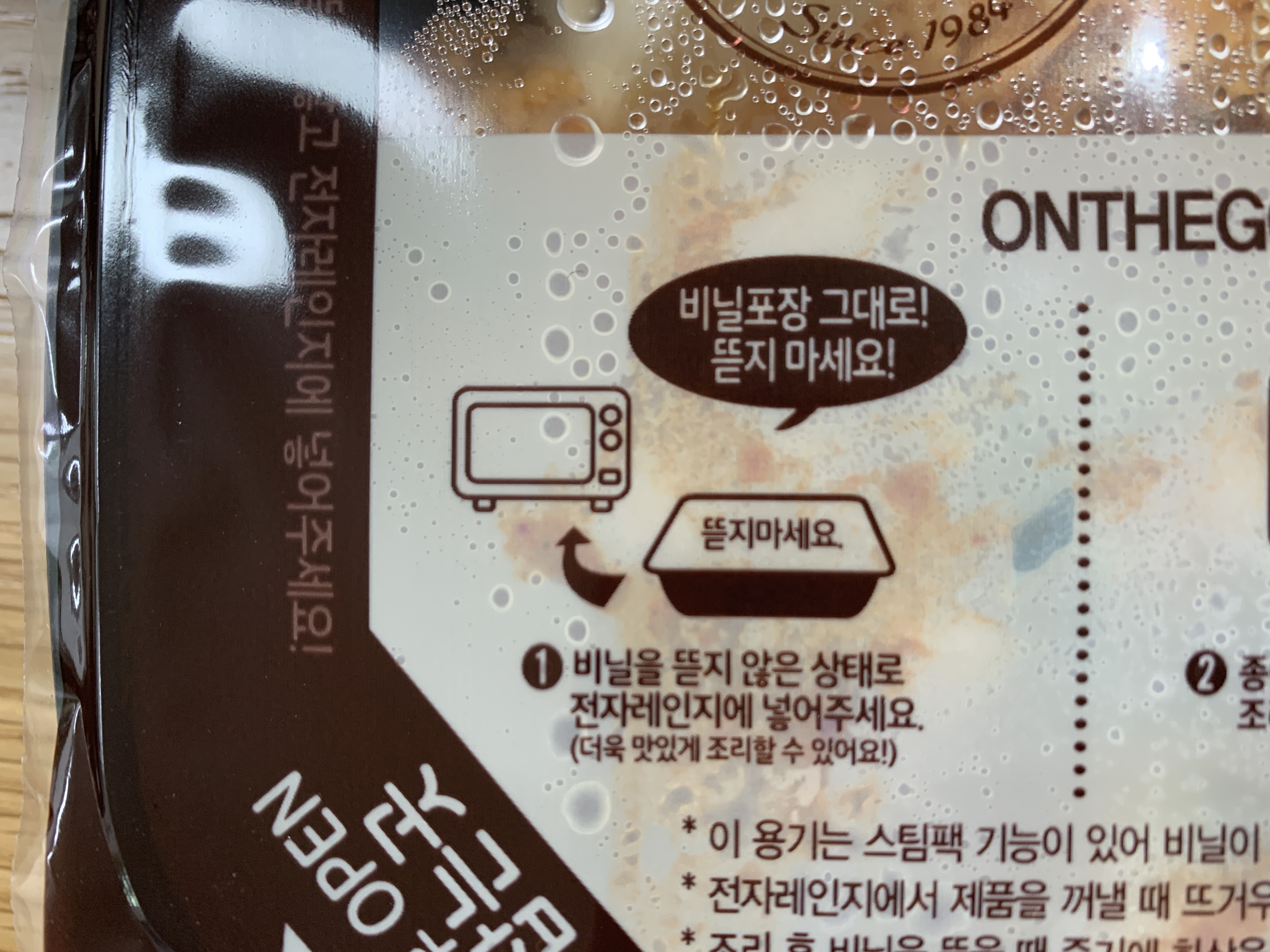 잘 보면 비닐포장을 뜯지 말아달라고 몇 번이나 말하고 있다. 그렇게 주의를 하라고 하니 꼭 그대로 넣어보았다. 옆에 스팀 배출구가 따로 있어 터지거나 하지는 않나보다.
