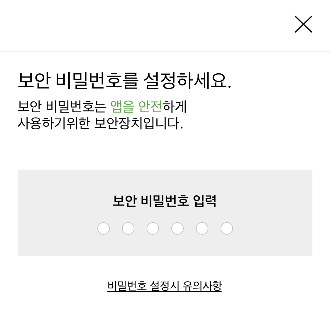 5. 보안 비밀번호를 설정한다.
