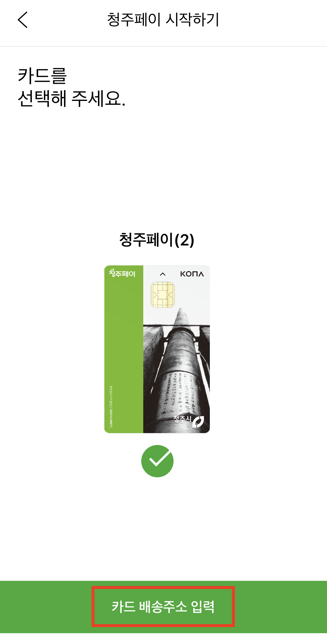 11. 모든 발급이 완료되면 나타나는 [청주페이 앱 시작하기] 버튼을 클릭한다.