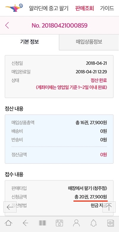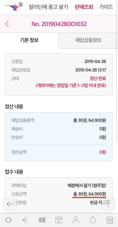 필자는 이와 같은 방법으로 두 번의 중고책 판매를 진행하였다. 각각 27,900 원과 64,900 원을 판매하였다. 가지고간 책을 모두 판매한 것은 아니다. 그날의 재고량에 따라 매입이 진행되지 않는 책들도 종종 있으니 이점 유의하자. 집에서 다 읽은 책들 중 판매를 하고싶은 책이 있다면 위와 같은 방법으로 판매를 진행해보자.