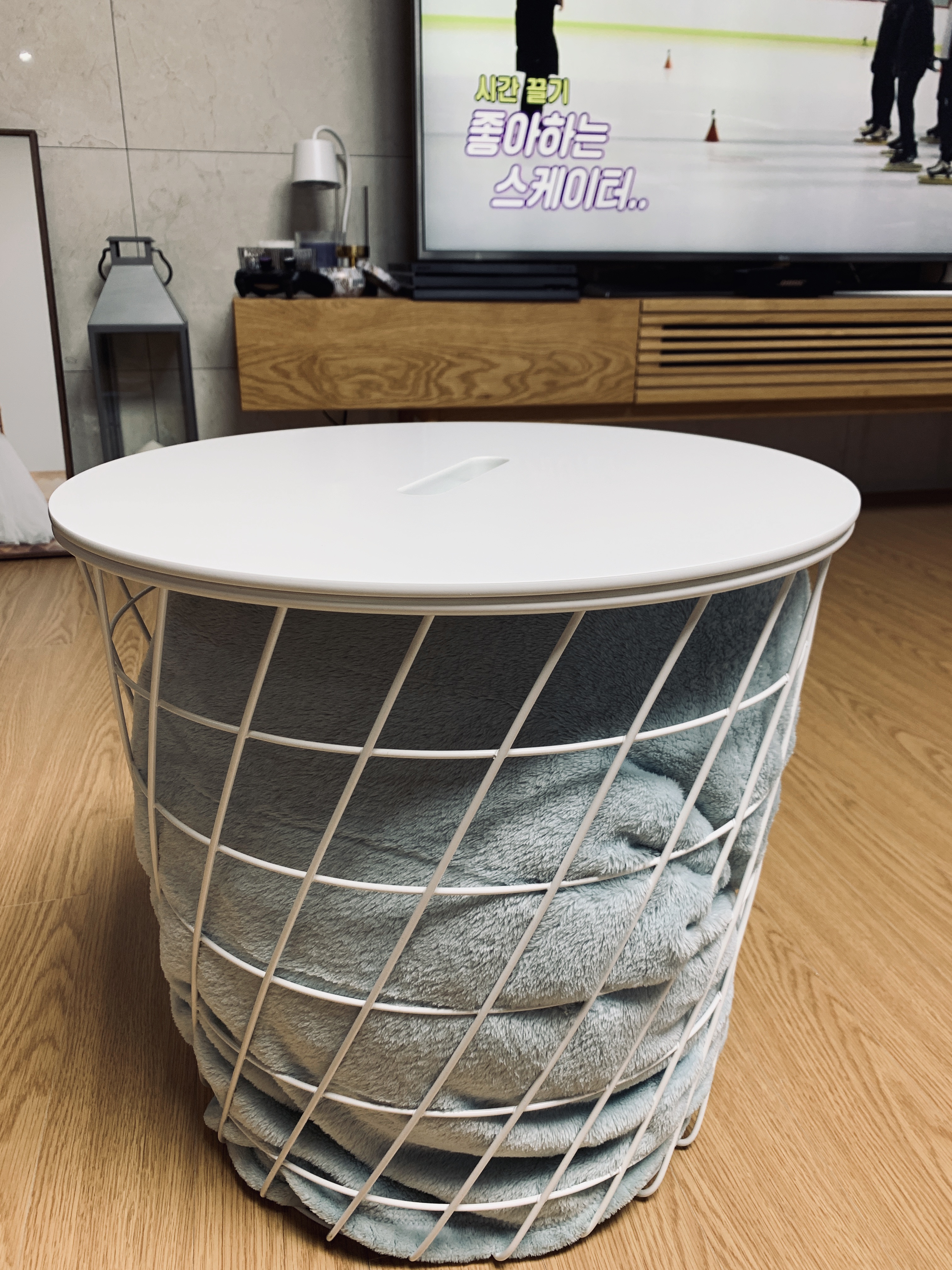 거실에 널브러져 있는 담요를 보관할 수 있는 수납테이블이 있으면 좋겠어.