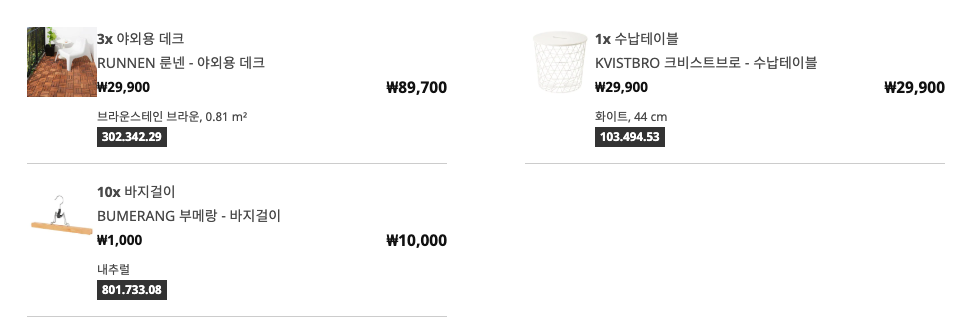 예전에는 부모님 댁에 가는 길에 광명 이케아를 들러 한 트렁크 사 오곤 했는데, 요즘은 배송비만 내면 온라인 이케아에서 대부분의 물품이 구매가 가능하다. (부피 또는 무게에 따라 배송비는 달라진다.)