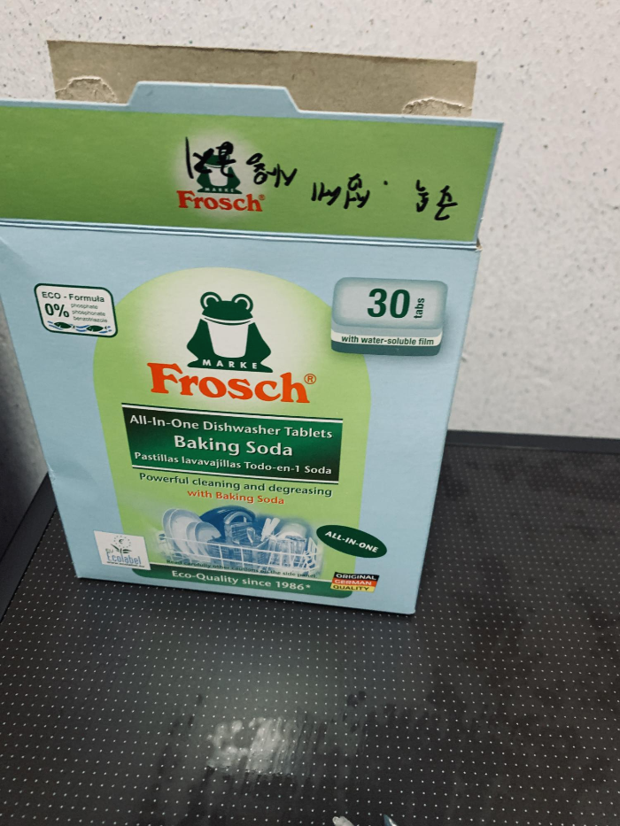 꼭 알아야 할 점이 스티커로 붙여져 있다. 처음 설치를 해주실 때 린스를 일회용 통에 담아오셔서 넣어주셨다. 세척이 완료된 후 건조될 때 얼룩이 생기지 않는다고 설명해 주셨다. 소네트라는 식기세척기용 독일 린스를 추천해 주셨다.
