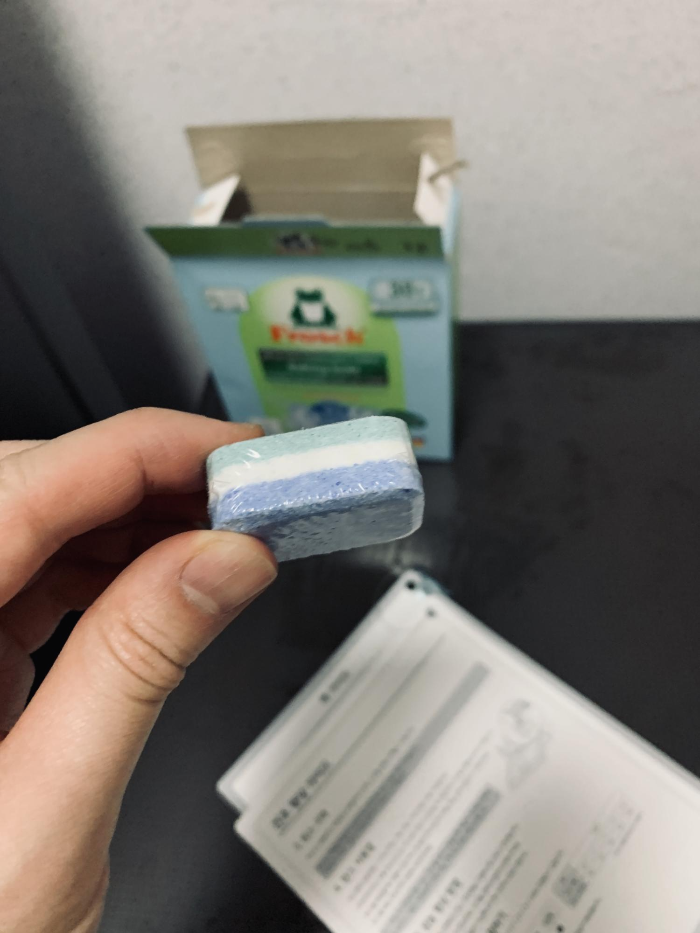 전용 가루 세제를 주고 가시는데, 한 개를 반 잘라서 사용하면 된다고 한다. 급속 모드와 섬세 모드에는 사용 금지라고 써주셨다.