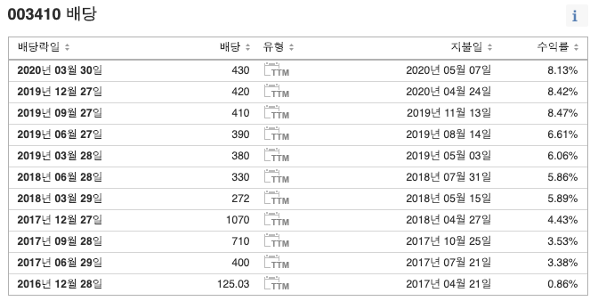 ▼ 쌍용양회가 인기가 많은 이유는 고배당율 때문인데요. 최근 주당 배당금이 430원에 달하면서 수익률이 최근에는 8.13%까지 올라갔네요. 고배당주임을 확실히 보여주고 있습니다. 우리에게 중요한 것은 배당금을 지급받기 위해 마지막으로 매수해야 할날일 텐데요. 바로 배당락일 전날이 되겠습니다. 쌍용양회의 배당락일은 3월 말, 6월 말, 9월 말, 12월 말로 정해져 있습니다. 6월 예정 배당락일은 아직 공지가 되지 않았습니다만, 가장 가까운 배당락일은 6/28 (6/23 기준) 앞뒤가 되겠네요. 그전까지 매수를 해놓으셔야 만 배당금을 지불받을 수 있다는 점 기억하셔야겠네요.