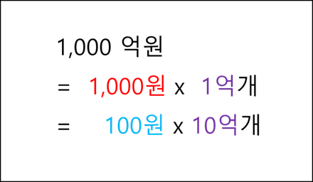 예를 들어 보겠습니다. 기업의 평가액이 1000억원이고, 액면가를 1000원으로 잡으면 발행되는 주식수가 1억개가 되는 샘이죠. 액면가를 100원으로 잡으면 주식수가 10억개가 되는 것입니다.